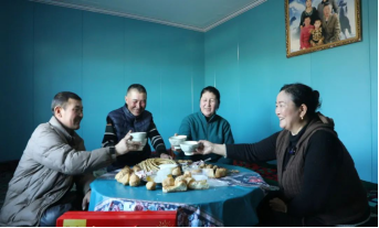在阿米娜·托留汗的家中,屋里彌漫著醇厚的奶茶香氣。阿米娜·托留汗正和親戚朋友歡聚。大家一邊品嘗著美食,一邊分享著過去一年的點點滴滴,并以奶茶代酒,互相說著新春祝福。屋子里歡聲笑語不斷。