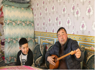 推開牧民卡瑪爾別克?卡德爾汗的家門,一股暖流就迎面撲來。屋內(nèi)既寬敞又明亮,冬日的陽光透過窗戶灑滿房間,窗戶上嶄新的窗花將整個家映照得溫馨而美好。哈吾拉?卡瑪爾別克正坐在一旁聽爸爸彈冬不拉??吹轿覀冞M(jìn)來,他熱情地打招呼,臉上洋溢著純真的笑容。