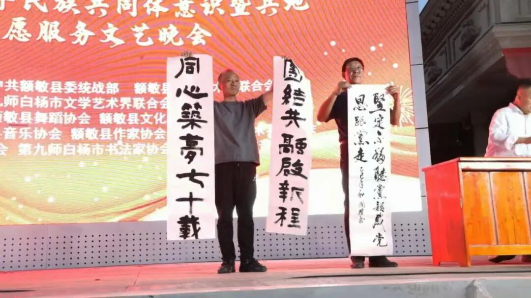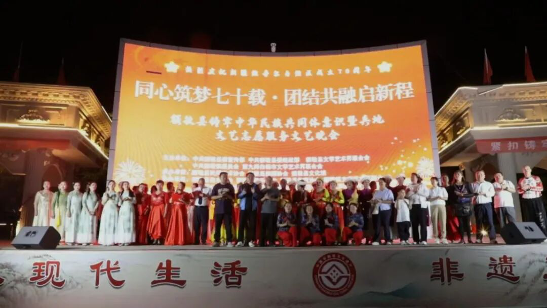為慶祝自治區(qū)成立70周年,推動(dòng)兵地文藝融合發(fā)展,8月29日晚,“同心筑夢(mèng)七十載,團(tuán)結(jié)共融啟新程”額敏縣鑄牢中華民族共同體意識(shí)暨兵地融合文藝志愿服務(wù)文藝晚會(huì)在也迷里廣場(chǎng)精彩上演。