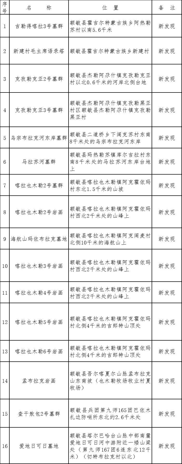 【文物保護工作單位信息】額敏縣第四次全國不可移動文物普查新發(fā)現(xiàn)未定級不可移動文物名錄