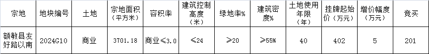 1.本次宗地掛牌以增價方式競價,宗地[2024G10]每次增價幅度為5萬元。