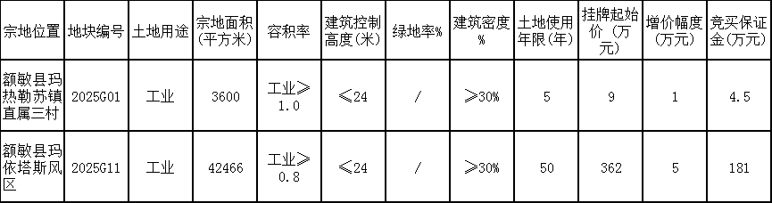 1.本次宗地掛牌以增價方式競價,宗地[2025G01]每次增價幅度為1萬元;[2025G11]每次增價幅度為5萬元。