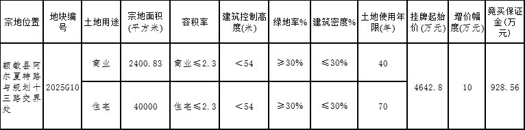 1.本次宗地掛牌以增價(jià)方式競(jìng)價(jià),宗地[2025G10]每次增價(jià)幅度為10萬元。