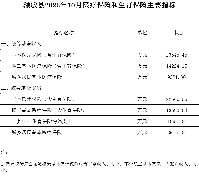 額敏縣2025年10月醫(yī)療保險(xiǎn)和生育保險(xiǎn)主要指標(biāo)
