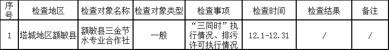 表1:塔城地區(qū)生態(tài)環(huán)境局額敏縣分局生態(tài)環(huán)境執(zhí)法“雙隨機、一公開”日常監(jiān)管事前信息公開表