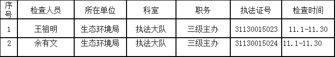 1、公開內(nèi)容:生態(tài)環(huán)境執(zhí)法“雙隨機(jī)、一公開”抽查結(jié)果信息及抽查人員情況。(詳見表1和表2)