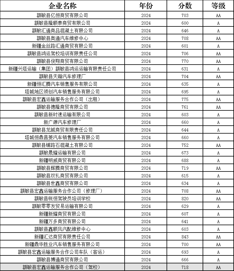 根據(jù)自治區(qū)交通廳、地區(qū)交通運(yùn)輸局工作安排,2025年度,額敏縣交通運(yùn)輸局組織轄區(qū)內(nèi)出租汽車行業(yè)企業(yè)開展2024年度各企業(yè)質(zhì)量信譽(yù)考核,已考核完畢,現(xiàn)公示如下。