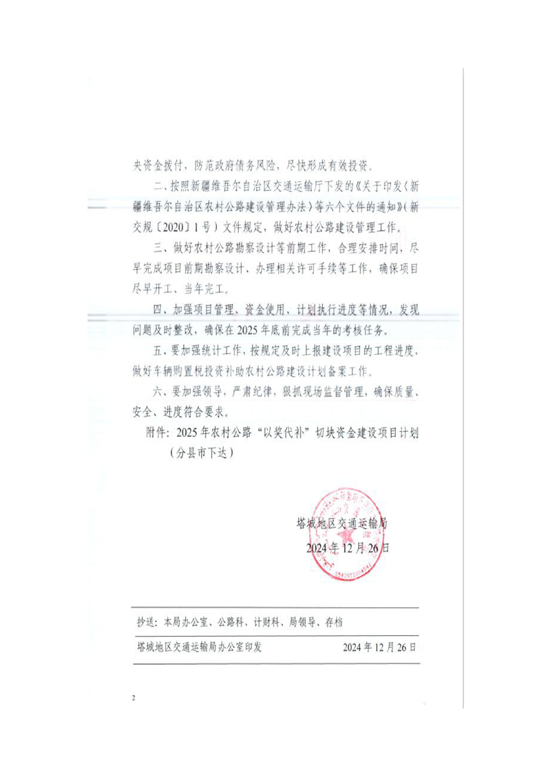 關(guān)于提前下達(dá)2025年農(nóng)村公路“以獎代補(bǔ)”切塊資金建設(shè)項(xiàng)目計(jì)劃的通知