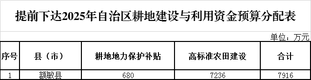 2024年,上級(jí)提前下達(dá)額敏縣2025年自治區(qū)耕地建設(shè)與利用資金7916萬(wàn)元,現(xiàn)將有關(guān)資金安排使用情況公示如下:
