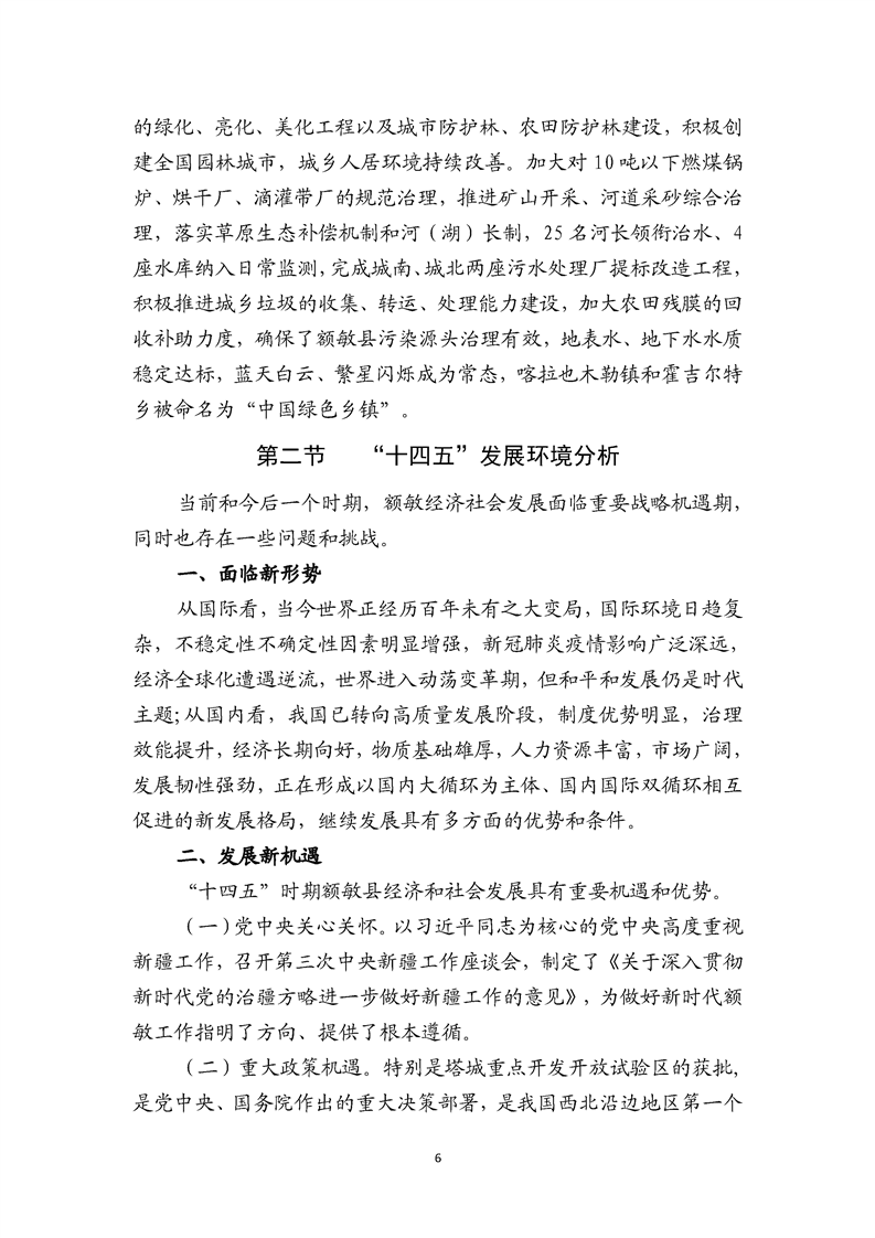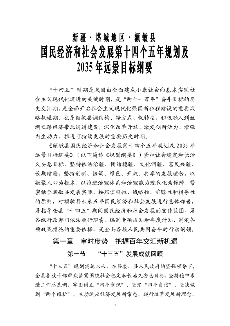 額敏縣國民經(jīng)濟(jì)和社會發(fā)展第十四個五年規(guī)劃