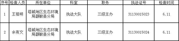 表2:2025年6月塔城地區(qū)生態(tài)環(huán)境局額敏縣分局生態(tài)環(huán)境執(zhí)法“雙隨機、一公開”抽查人員信息公開表
