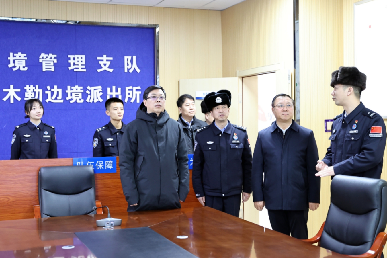 12月12日,地委書記支現(xiàn)偉在裕民縣阿勒騰也木勒邊境派出所,聽取工作匯報。塔城地區(qū)融媒體中心記者蘇珊琳攝