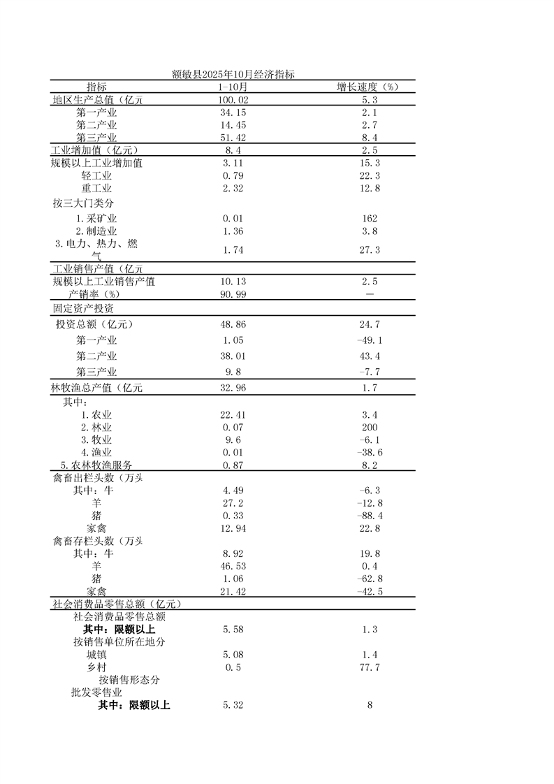額敏縣2025年10月主要經(jīng)濟(jì)指標(biāo)