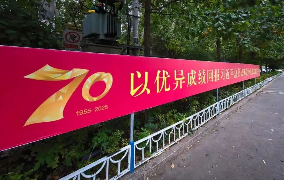 各主干道上懸掛著慶祝標(biāo)語成為一道道流動的風(fēng)景線,不僅點(diǎn)亮了城市的街道更點(diǎn)燃了人們心中的自豪與喜悅