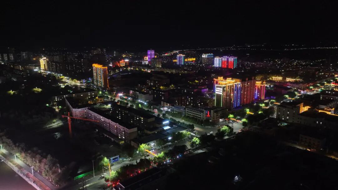 夜幕降臨,額敏的燈光秀,點(diǎn)亮城市夜空,氛圍拉滿!“中國(guó)紅”扮靚額敏街頭。