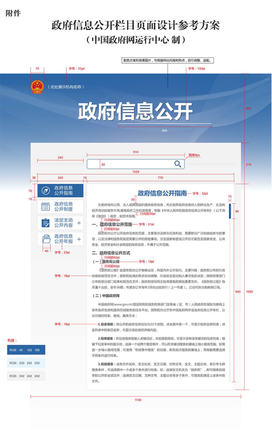 中國政府網(wǎng)運(yùn)行中心根據(jù)上述要求設(shè)計(jì)了“政府信息公開欄目頁面設(shè)計(jì)參考方案”,供參考使用。